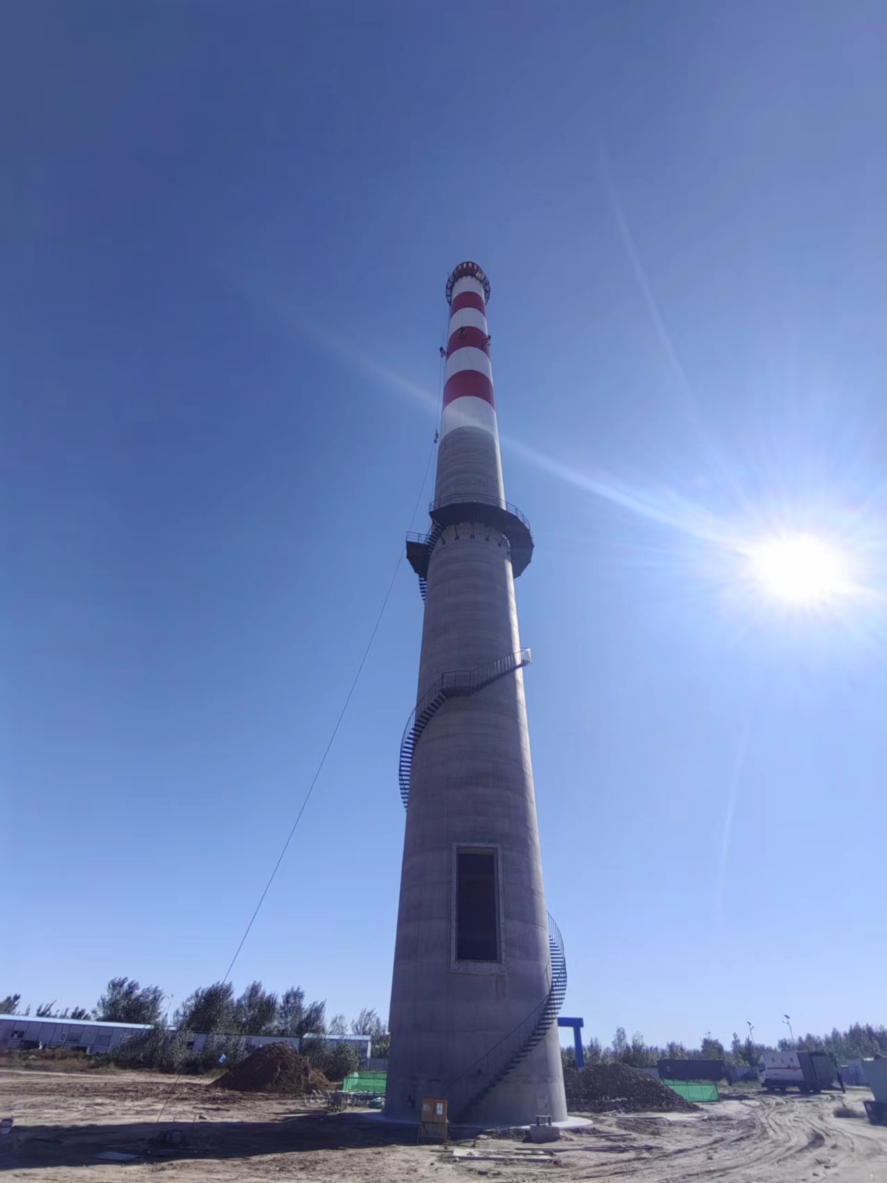 - 混凝土煙囪新建該混凝土煙囪新建工程的特殊性,在安全、快捷、方便的目標(biāo)下,根據(jù)本公司現(xiàn)場(chǎng)考察,依托本公司雄厚的技術(shù)實(shí)力和豐富的高空作業(yè)的經(jīng)驗(yàn),結(jié)合施工現(xiàn)場(chǎng)復(fù)雜的施工環(huán)境特制定如下施工方案